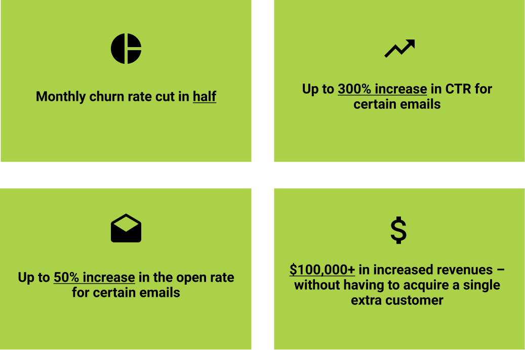 I reduced churn by 50% and added over $100,000 in projected annual revenue for Snappy Kraken by creating an email onboarding sequence. The emails were carefully timed to increase engagement without bringing in any new customers. I boosted open rates and click-through rates significantly.